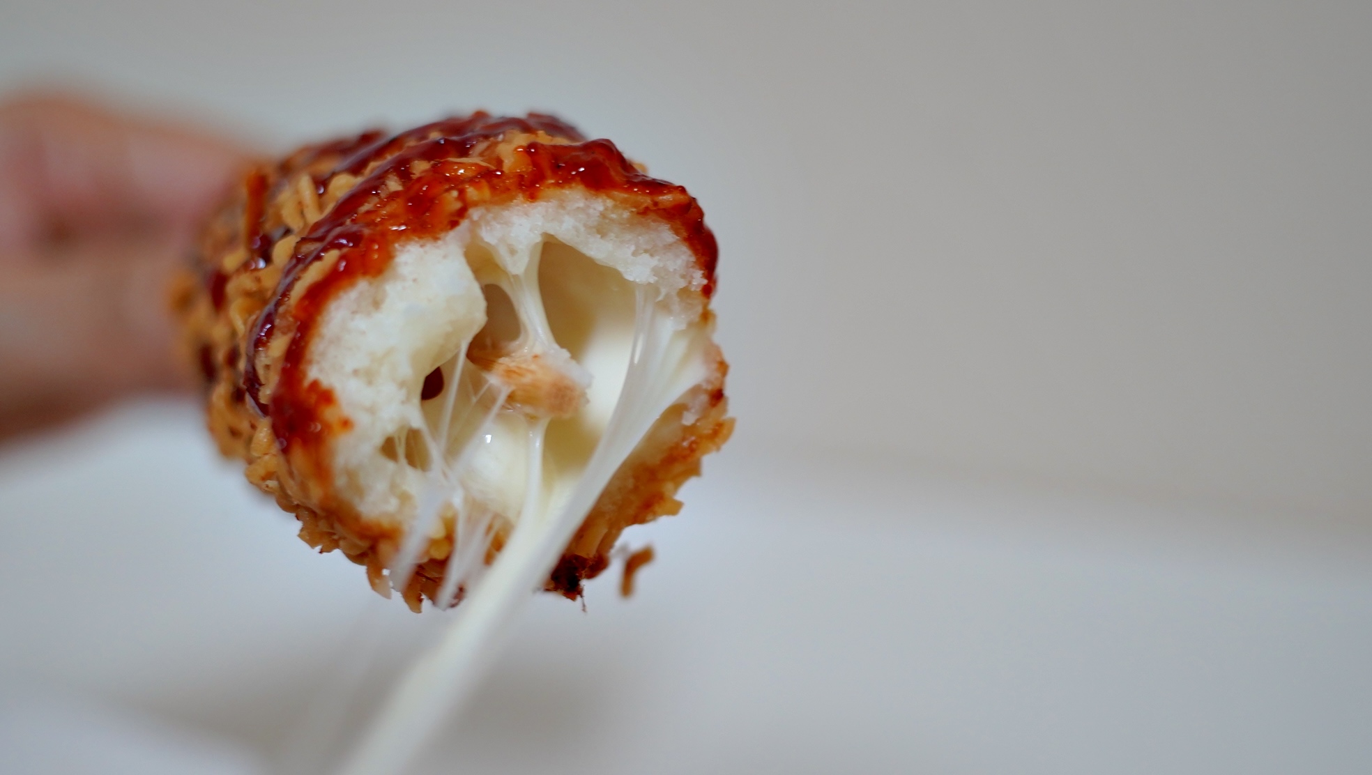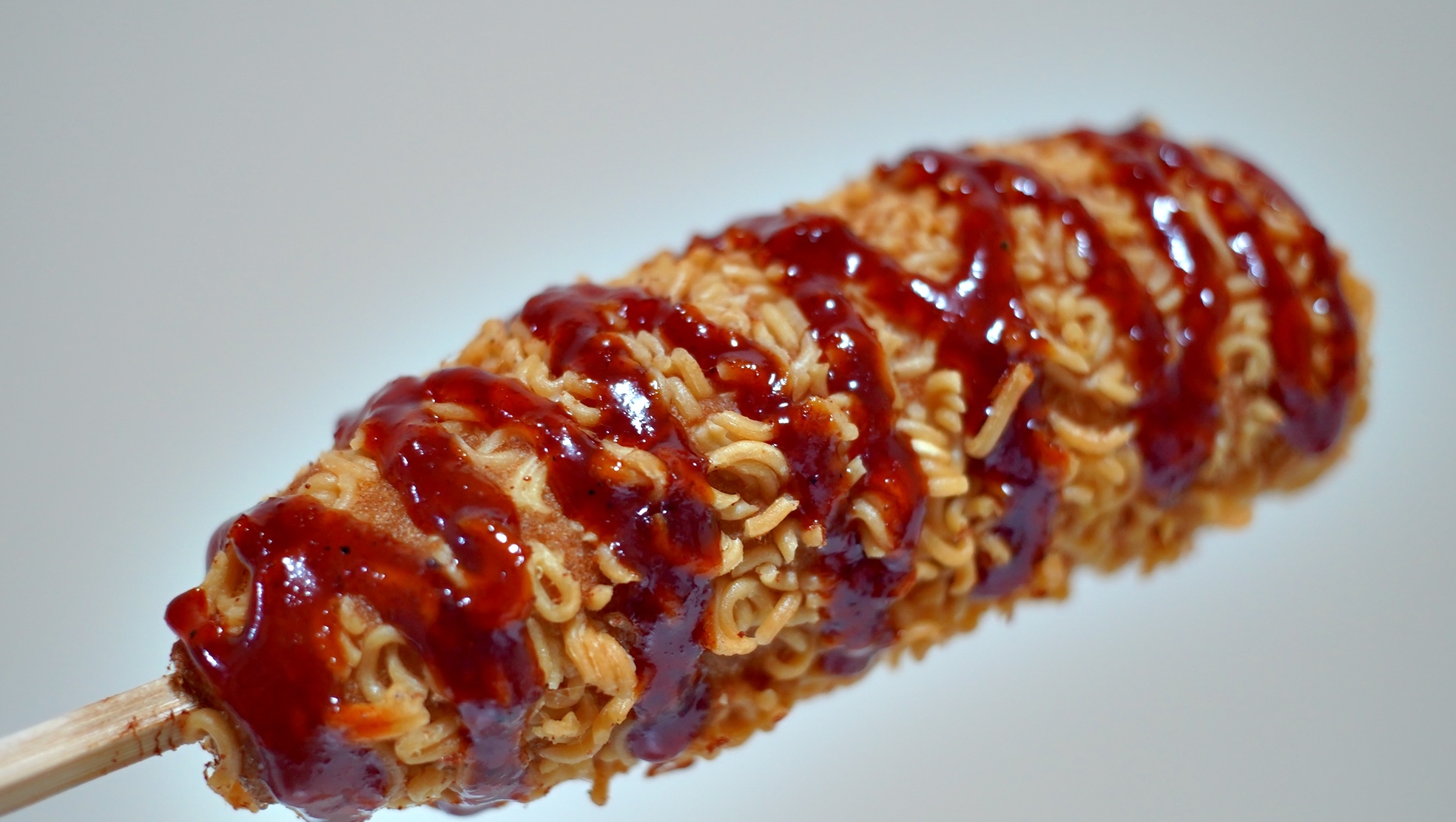 불닭소스가 뿌려진 라면땅맵핫도그